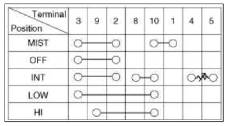 Check for continuity between the terminals while operating the wiper and washer switch. If it is not normal condition, replace wiper and washer switch.