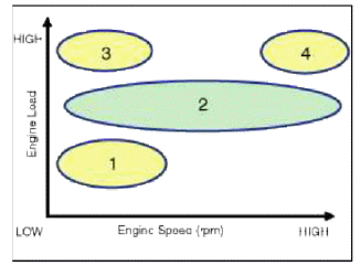 Continuous Variable Valve Timing (CWT) system advances or retards the valve timing of the intake and exhaust valve in accordance with the ECM control signal which is calculated by the engine speed and load.