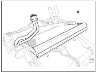 19. Loosen the mounting screw and then remove the heater core cover (A).