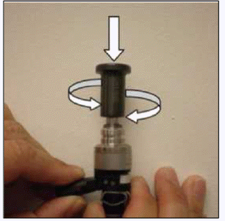 7. Place the resizing tool (flange up) over the seal. Twist the tool slightly while pushing down over the seal. This should reduce the size of the seal.