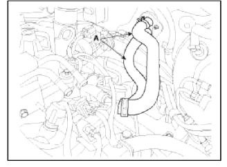 25. Connect the radiator upper hose (A) and lower hose (B).
