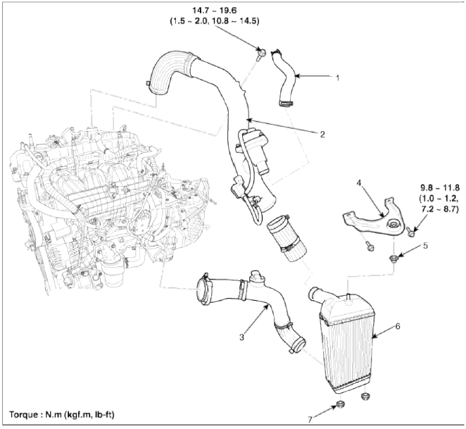 Tightening torque 9.8 ~ 11.8 N.m (1.0 ~ 1.2 kgf.m, 7.2 ~ 8.7 lb-ft)