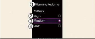 If the vehicle is restarted, Warning Volume will maintain the last setting.