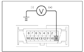 1. Measure the voltage between terminal 9 of the data link connector and body ground.